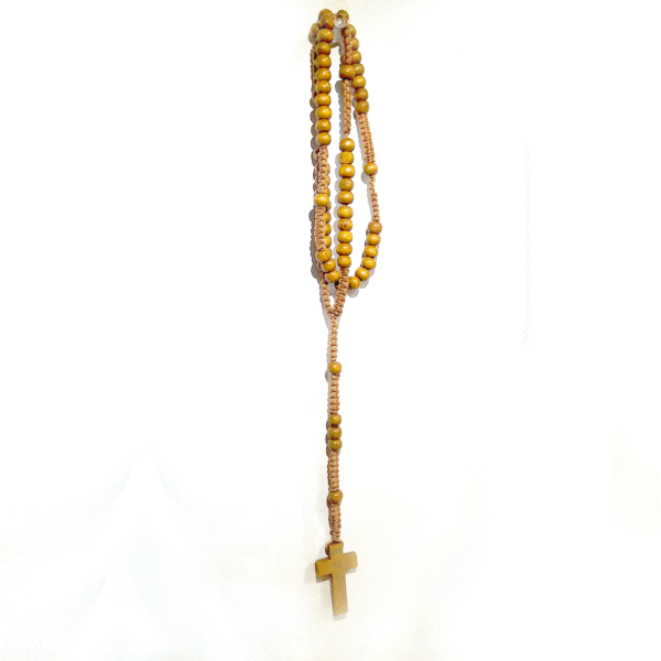 CAMANDULA TEJIDO DE HILO Y CRUZ DE MADERA